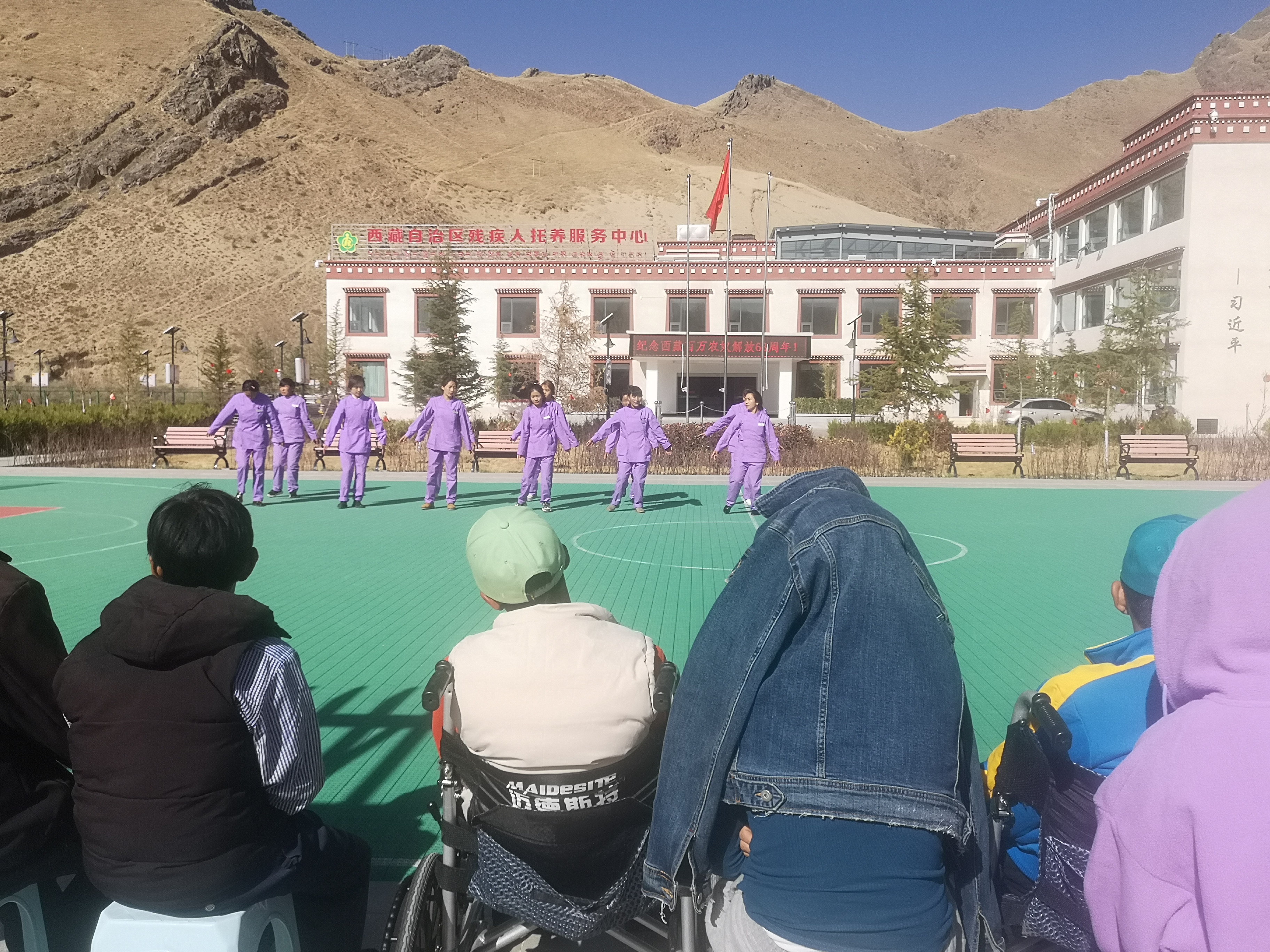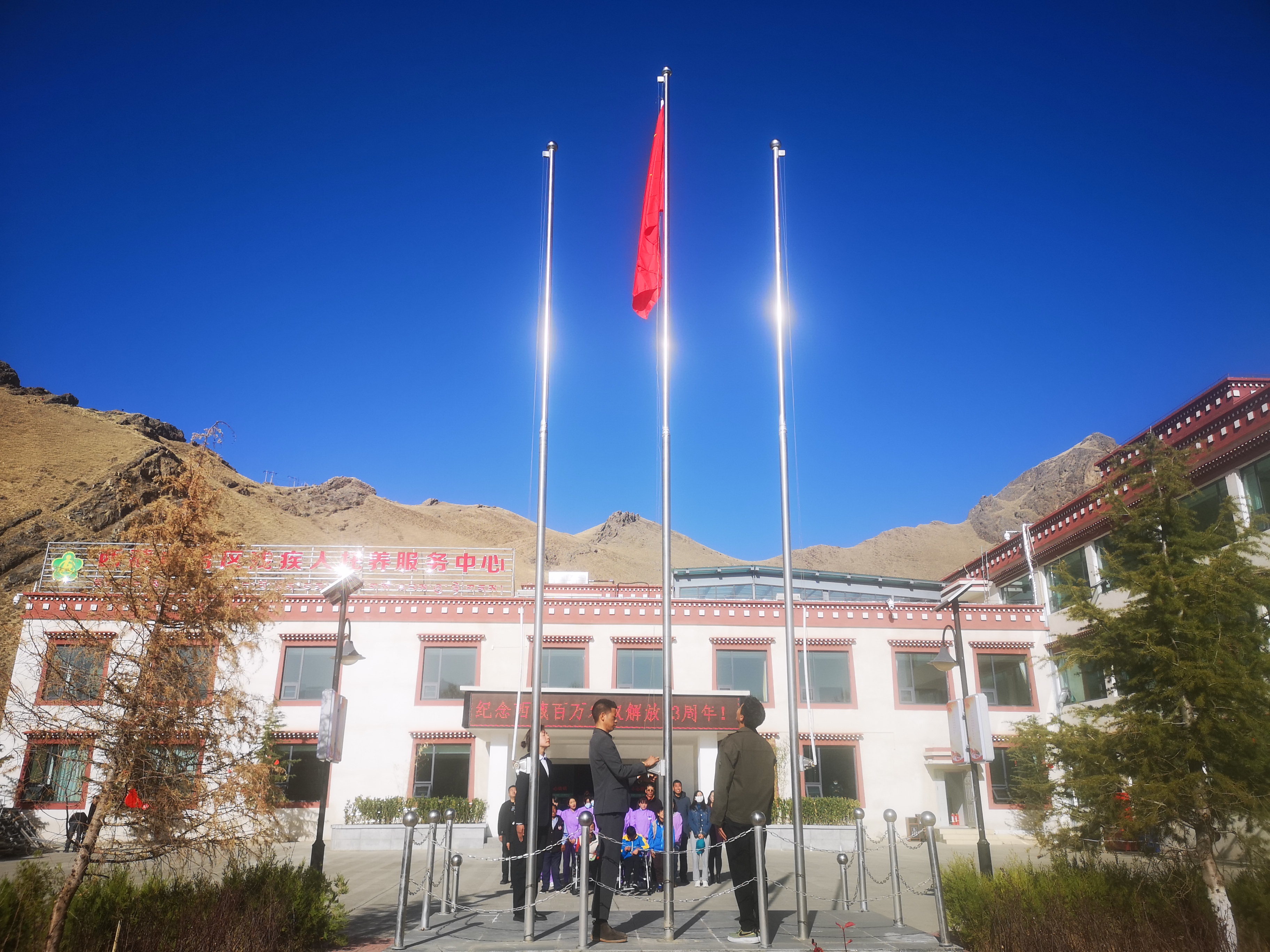 自治区残疾人托养服务中心全体干部与工作人员、托养对象一起升国旗、唱国歌,举办文艺活动、观看影片《农奴》、座谈会等活动,纪念西藏百万农奴解放63周年,以实际行动不断丰富托养对象的精神生活。