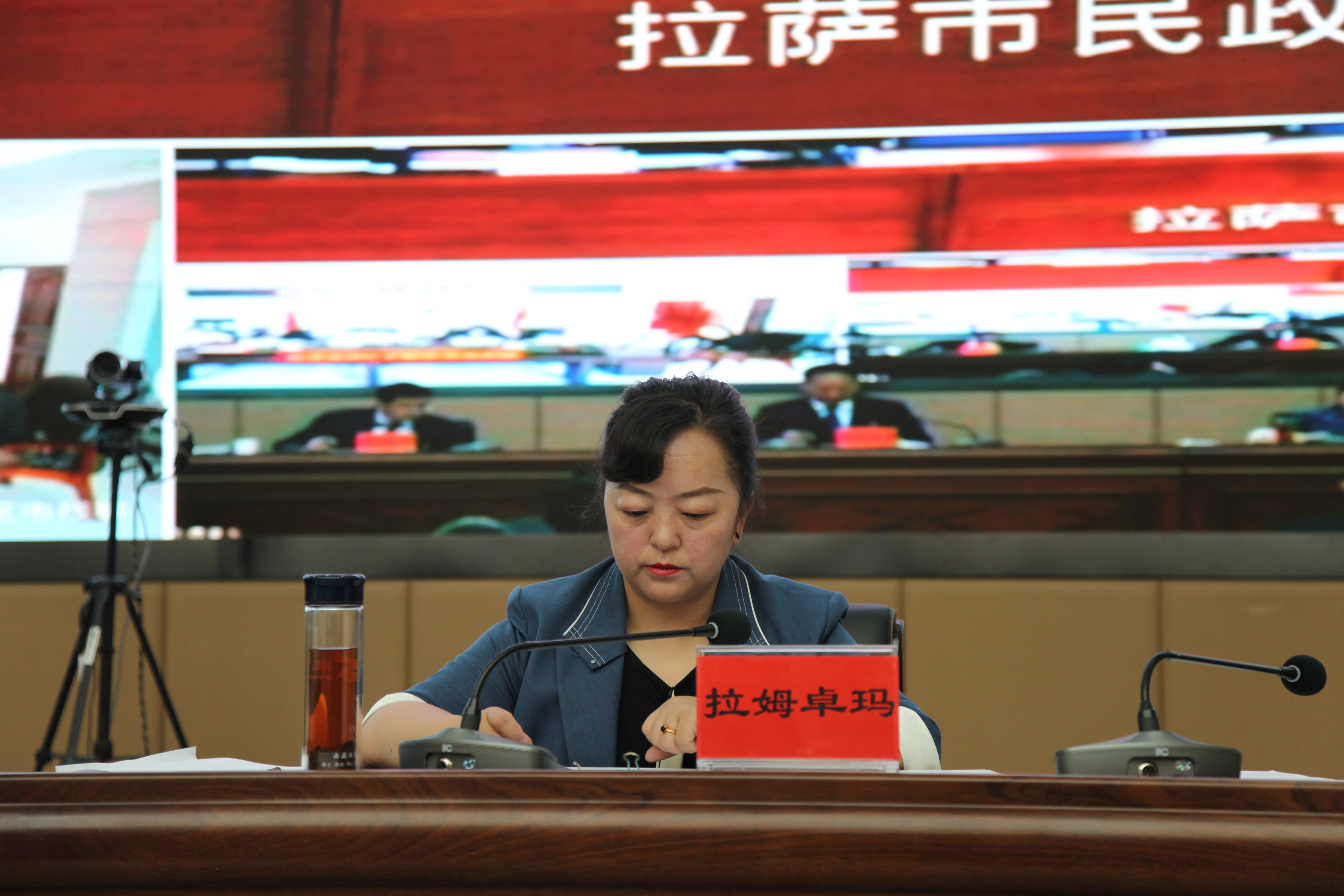 图为区残联党组成员、副理事长拉姆卓玛主持会议