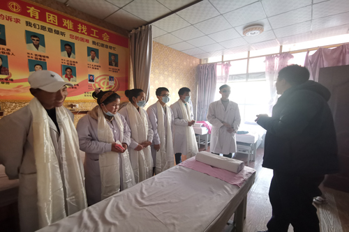图为慰问日喀则市保康盲人养生服务有限责任公司