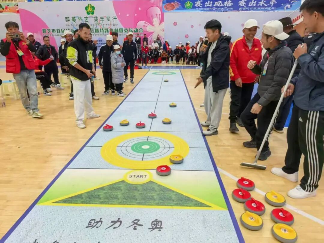 本届运动会兼顾竞技性与趣味性,结合不同残疾类别运动员的特点,设置了田径、旱地冰壶等残特奥项目,以及“工布响箭”等民族特色项目,实现了“平等、参与、共享”的目标。其中,旱地冰壶作为最具观赏性的项目之一,竞争尤为激烈。各代表队战术精妙、配合默契,决赛阶段战况胶着,最终巴宜区代表队凭借关键一壶的稳定发挥锁定胜局,展现了策略思维与团队协作的高度统一。