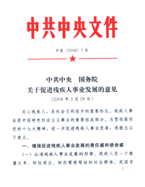 《中共中央 国务院关于促进残疾人事业发展的意见》